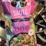Next, add the premade stir-fry veggies minus the sauce that comes with it.